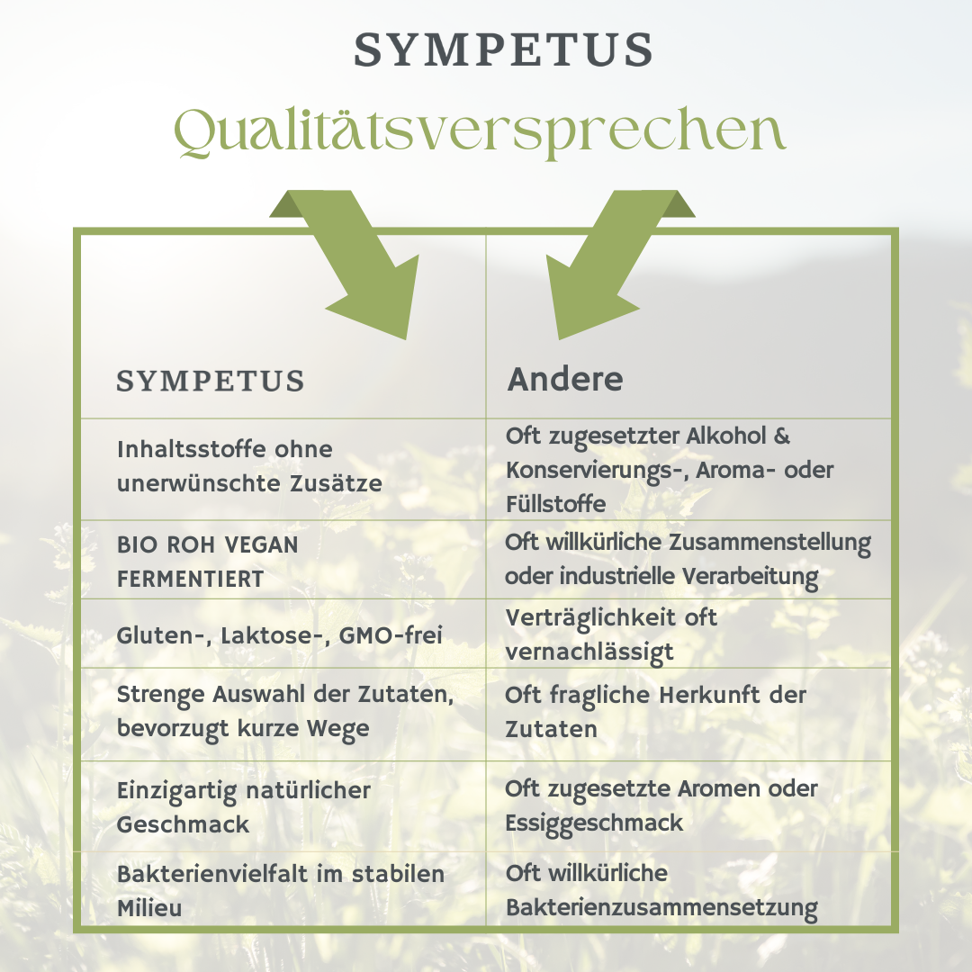 Yes! 100 % vegan, bio-zertifiziert, roh verarbeitet und frei von Gluten, Laktose oder Soja. Selbst wenn du sonst eher empfindlich auf Kräuter reagierst, taste dich langsam heran, denn durch die Fermentation werden viele Stoffe die Unbehagen auslösen, umgesetzt und in ihrer Struktur verändert, so sind sie leichter verträglich.