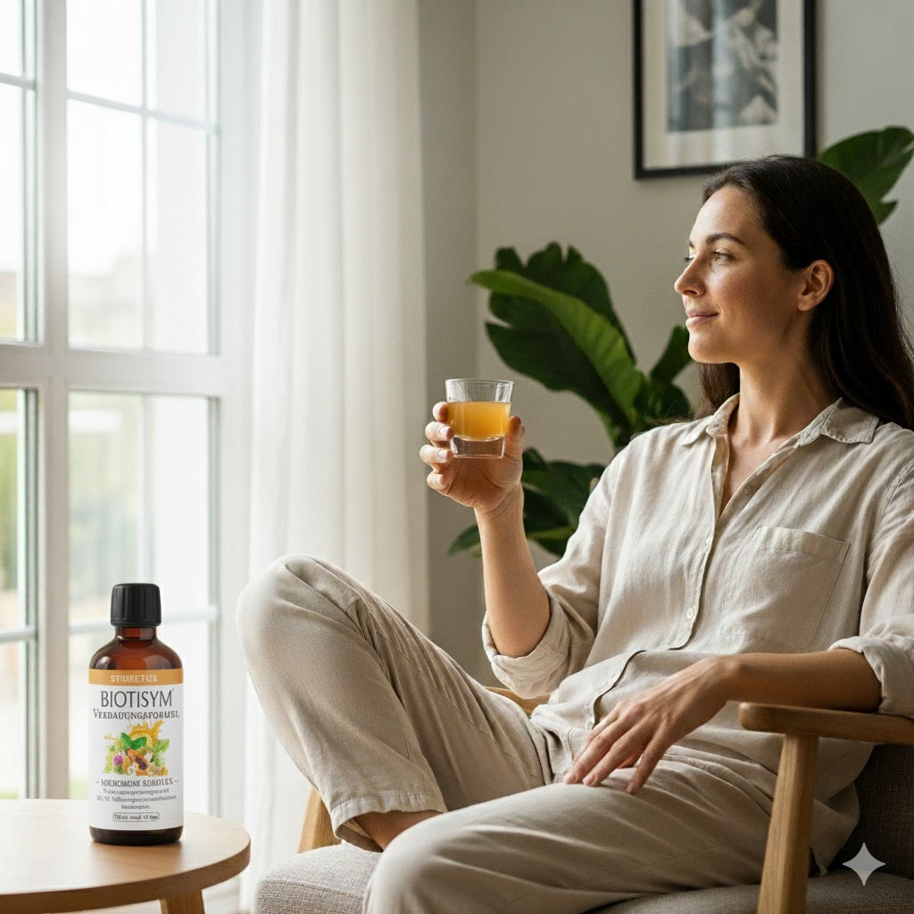 - Phase 3 (Woche 5–6): 15 ml VERDAUUNGSFORMEL täglich – stärkt Verdauungskraft & Balance.